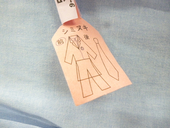 クリーニングタグでシミ抜きをしたことがわかります。
