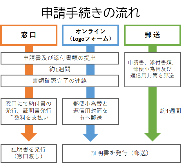 通常の窓口申請のほか、オンラインでも申請を受付しております。